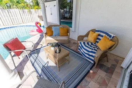 The south Florida sun is no joke, but don’t worry: you’ve got a private, heated pool steps from your back door. Grab the pool toys for some lighthearted fun, swim a few laps, or relax with a cold drink on a comfortable sun lounger. The home also has an outdoor shower, which is especially convenient after a day at the beach.